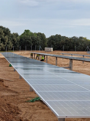 Instalación fotovoltaica en zona de montaña expuesta al viento y al estrés ambiental.